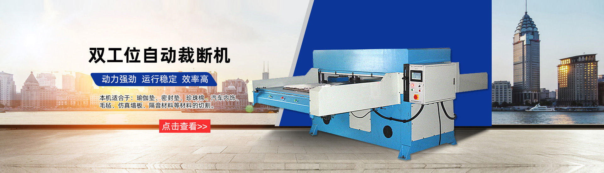 公司專業制造l 2T一25T液壓搖臂式裁斷機:25T一30T液壓平面式裁斷機;25T一30T液壓四柱龍門移動式裁斷機;25T一100T液壓四柱平面式裁斷機:30T一100T精密四柱式裁斷機(自動進料);100T一200T液壓四柱下壓式裁斷機(自動進料)和客戶要求的特型裁斷機械系列。產品規格齊全,可廣泛適用于制鞋、皮具、箱包、玩具、服裝、帽業、吸塑、包裝、木業、汽車裝飾等行業。